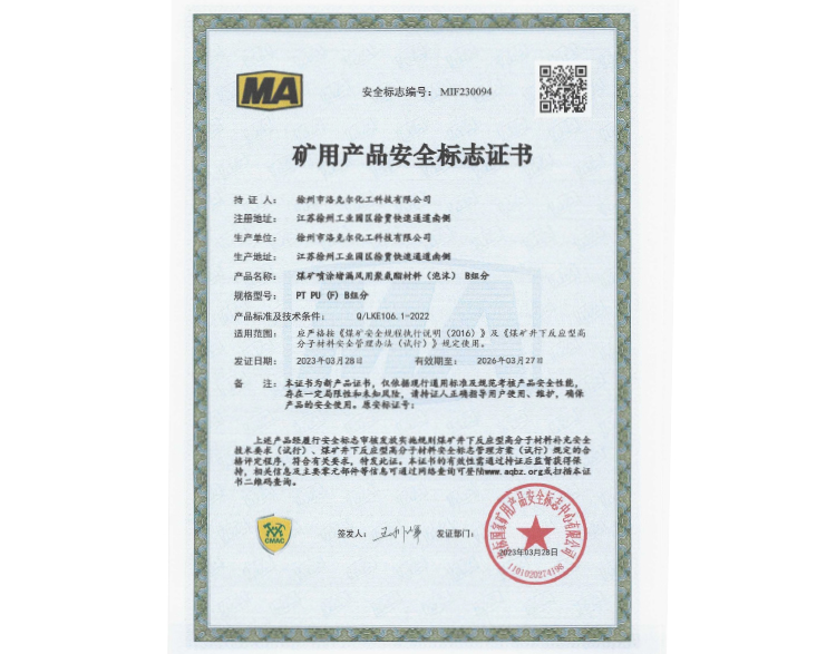 煤矿堵水用聚氨酯材料安标证